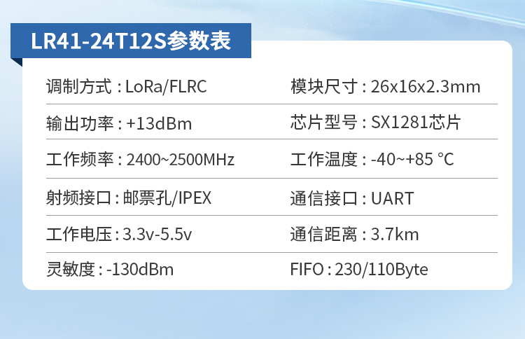 调制方式:LoRa, FLRC
