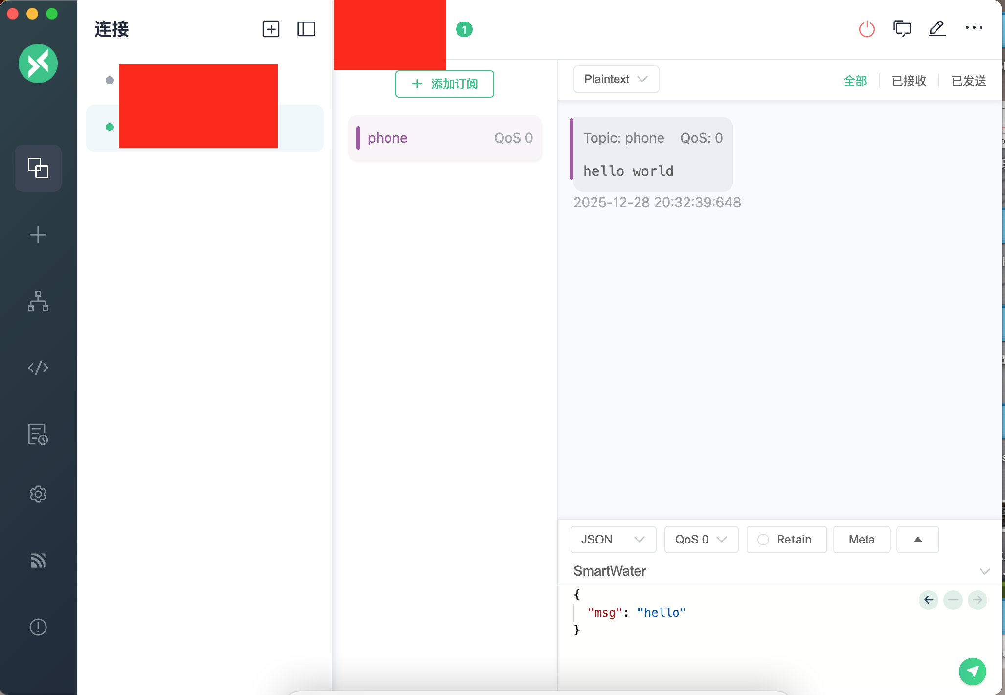 同时在 MQTTX上也订阅一下。