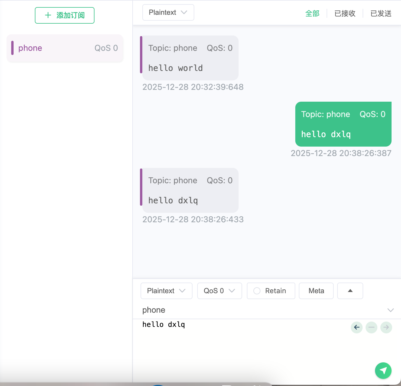 我们先订阅一个主题叫phone